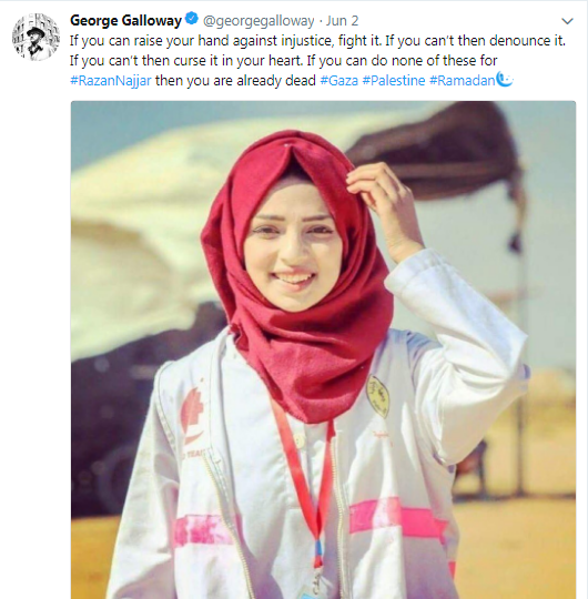 Georges Galloway : Si tu peux lever la main contre l'injustice, bats-toi. Si vous ne pouvez pas la dénoncer. Si tu ne peux pas la maudire dans ton cœur. Si