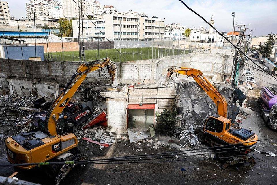 Il s'agit d'une violation flagrante du droit international !!! 16 magasins palestiniens ont été complètement démolis par les autorités israéliennes aujourd'hui dans le quartier Shuafat de Jérusalem.