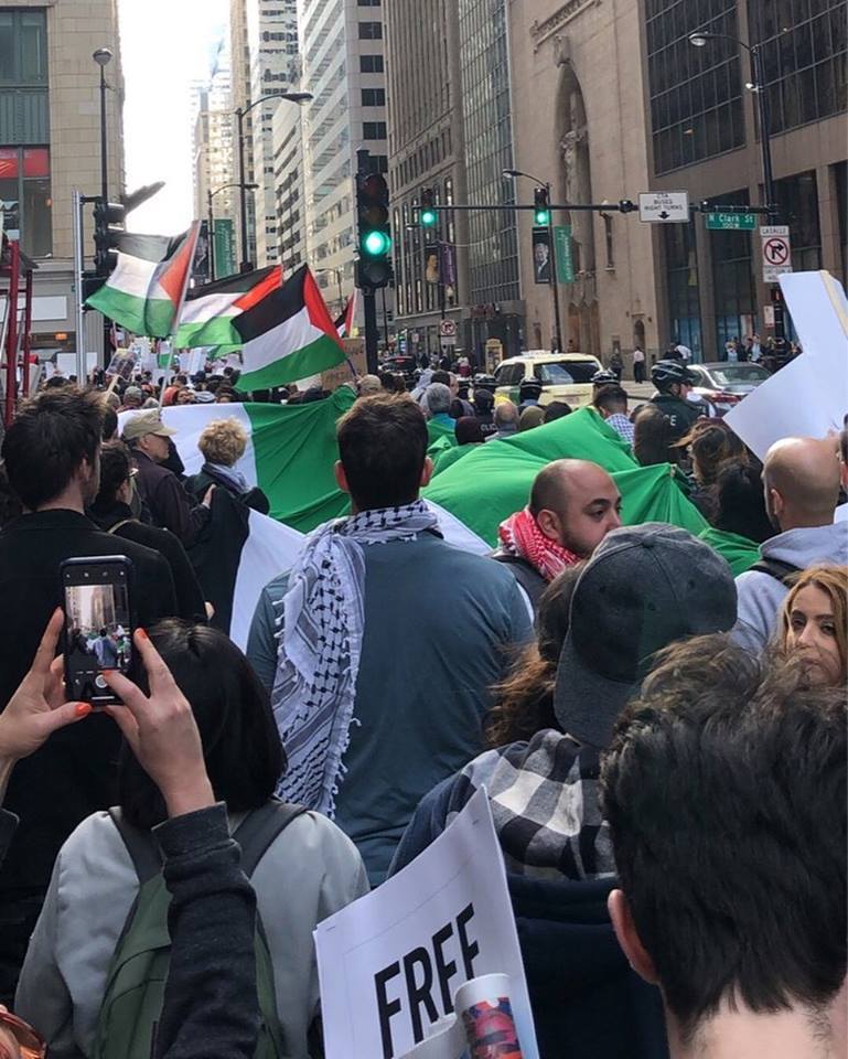 Manifestation à Chicago pour protester contre les crimes israéliens en cours contre des palestiniens innocents à Gaza Le monde dit ASSEZ dit à l'occupation israélienne et aux crimes de guerre & massacre de palestiniens