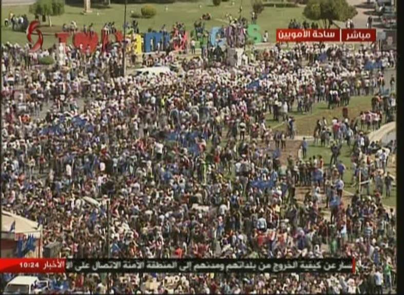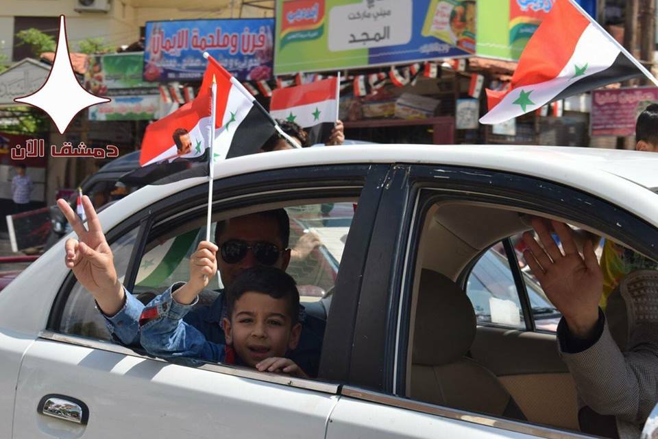 Ces images seront-elles publiées dans les nouvelles en Europe et en Amérique aujourd'hui ? Les citoyens syriens se sont rendus dans les rues, après les frappes aériennes dirigées par les États-Unis pour protester contre les interventions occidentales et montrer leur soutien au gouvernement syrien.