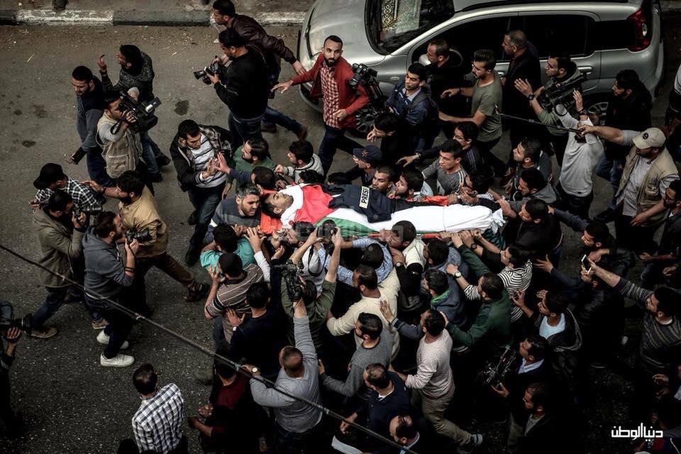 En images : Les funérailles de Yaser Murtaja, journaliste palestinien tué par les snipers israéliens