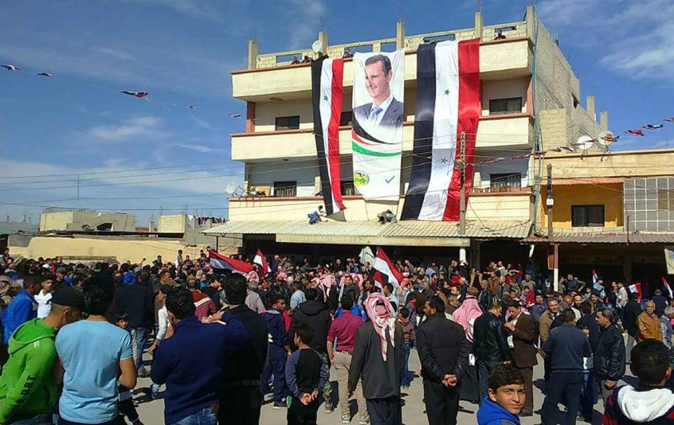 Des milliers de syriens sortent manifester dans la ville de Ghazlaniyah pour soutenir l'Armée Arabe Syrienne et Bachar Al Assad