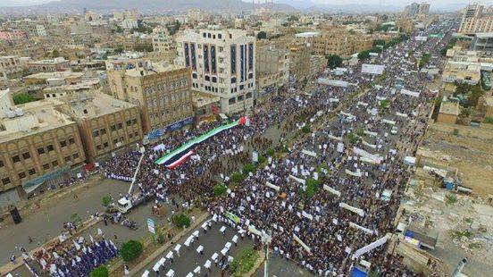 Malgré les bombardements saoudiens, des milliers de yéménites sont sortis dans les rues de Sanaa pour apporter leur soutien au Peuple palestinien et à la mosquée d'Al Aqsa