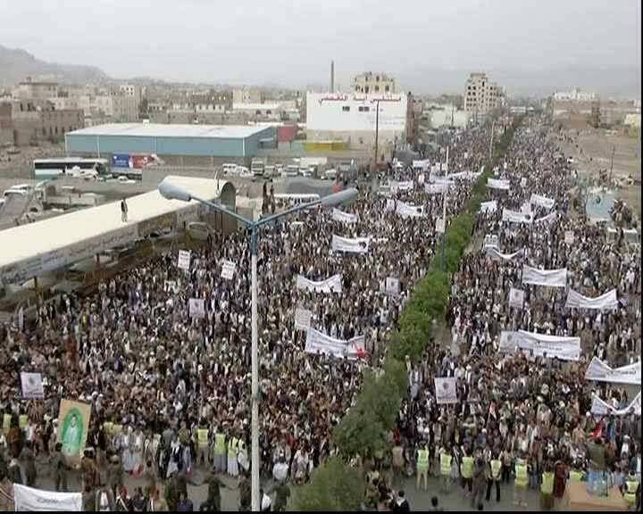 Des centaines de milliers de yéménites sont descendus dans les rues en disant "non au terrorisme américain" contre leur patrie. Les USA ont délivrés des F 35 anti-bunker et des bombes à fragmentation pour frapper le peuple yéménite.