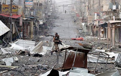 En images : Les terroristes salafistes de Daesh tirent des obus sur le quartier du Prophète Younous-Jonas (P) ... ce qui a entraîné des incendies à Souk Nabi (le marché du Prophète) dans la ville de Mossoul MORT A DAESH