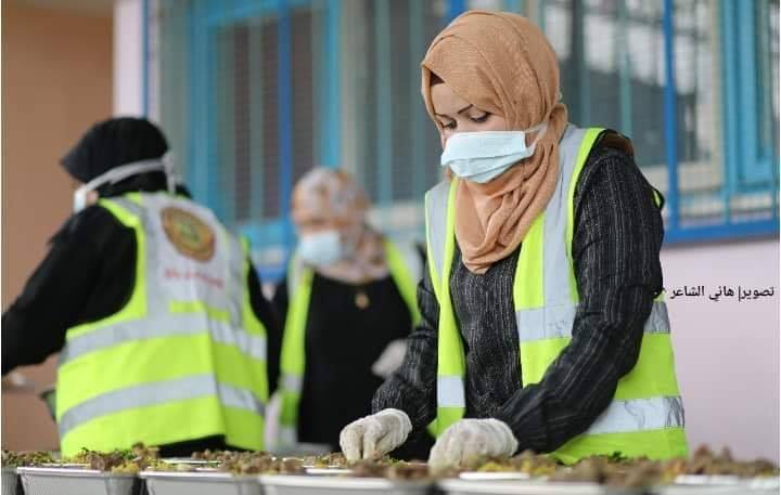 Des femmes volontaires de Rafah (sud de la bande de Gaza) préparent des colis alimentaires pour les familles necessiteuses et celles qui sont devenus pauvres à la suite de la crise en cours du Coronavirus