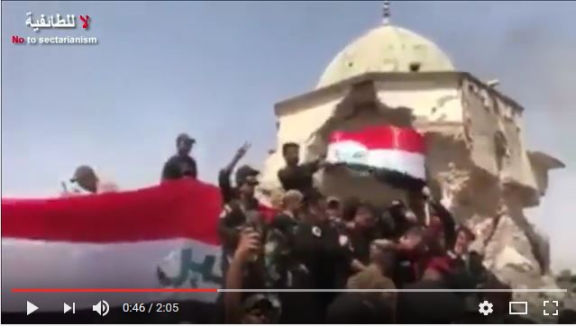 [Vidéo] | Un moment historique dans la libération de Mossoul : le Lieutenant général Abdelghani el-Assadi lève le drapeau irakien au dessus de la mosquée Nouri MORT AUX SALAFISTES ET