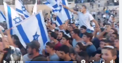 Des colons israéliens scandent « Mort aux Arabes » à la Marche du drapeau près de la porte de Damas, vieille ville de Jérusalem occupée. Sans la dissuasion efficace des missiles