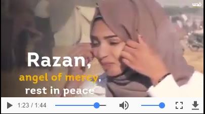 Razan Ashraf Najjar, 21 ans, secouriste volontaire, a été tuée par des tireurs d'élite israéliens tout en fournissant les premiers