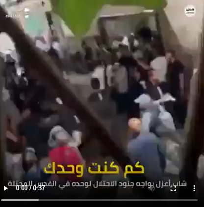 C’est arrivé à Jérusalem aujourd’hui : un Palestinien sans défense face à l’armée d’occupation.