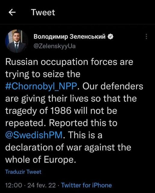 1 – L’Armée de Russie a maintenant bien pris le contrôle militaire de la centrale nucléaire de Tchernobyl…