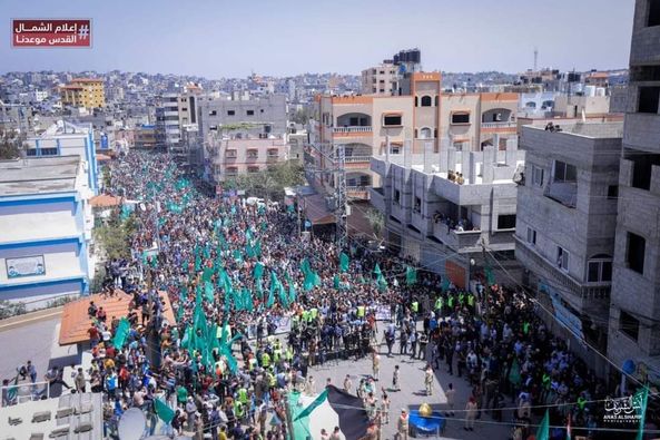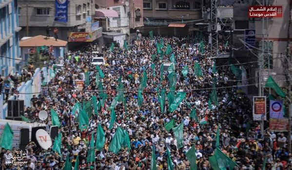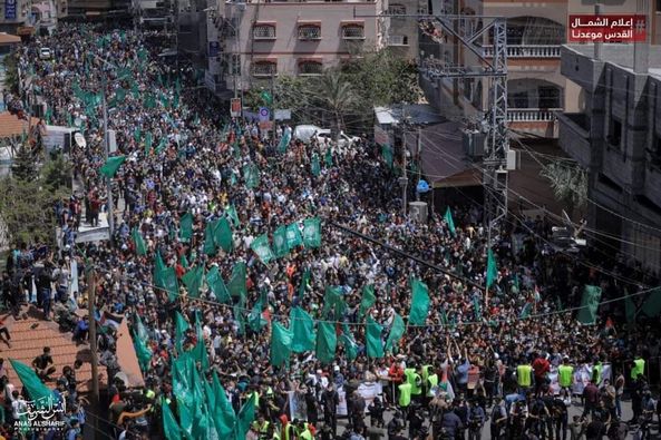 Des milliers de Palestiniens manifestent dans la bande de Gaza pour protester contre la décision du leader de l’Autorité palestinienne, Mahmoud Abbas, de bloquer aujourd’hui les élections législatives et présidentielles en retard.