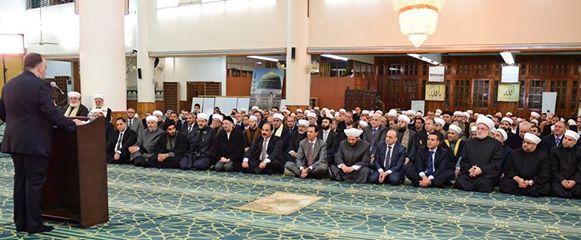 Le Président Syrien Bachar Al Assad participe à la cérémonie de célébration de la Naissance du Prophète Mohammed (P) dans une mosquée à Damas