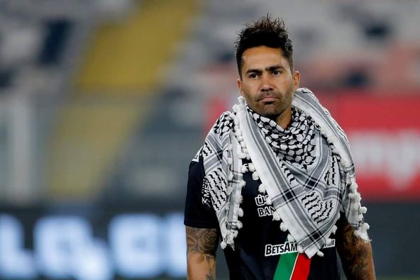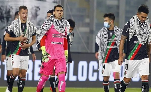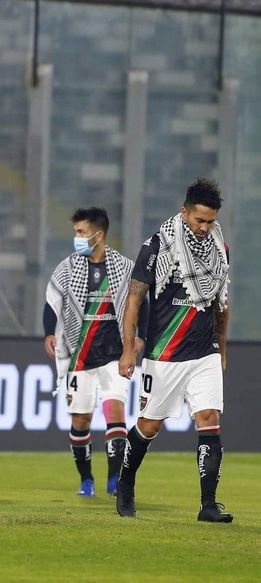 Les footballeurs du club chilien Deportivo Palestino portent la coiffe traditionnelle palestinienne, keffieh, pour exprimer leur solidarité avec le peuple palestinien vivant sous occupation israélienne.