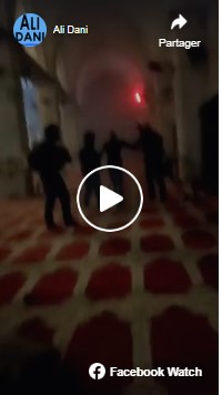 Images de la salle de prière d’Al-Qibli dans l’enceinte de la mosquée Al-Aqsa alors que les forces israéliennes utilisent des gaz lacrymogènes et des bombes assourdissantes contre les fidèles.