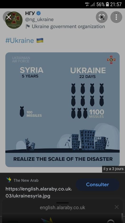Zelensky le clown prétend que les 10 années de guerre imposée à la Syrie par ses copains sionistes juifs, chrétiens et arabes ne vaut pas 1/10e de ce que ferait subir la Russie à l’Ukraine…