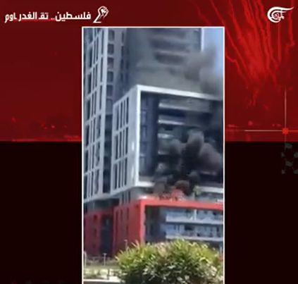 Un bâtiment de la colonie de Sderot percuté de plein fouet par un obus de la résistance, tiré depuis Gaza, et y causant des dégâts considérables