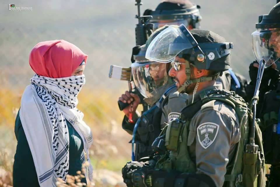 Une jeune palestinienne courageuse se tient face aux soldats israéliens, essayant de les empêcher d’arrêter son frère